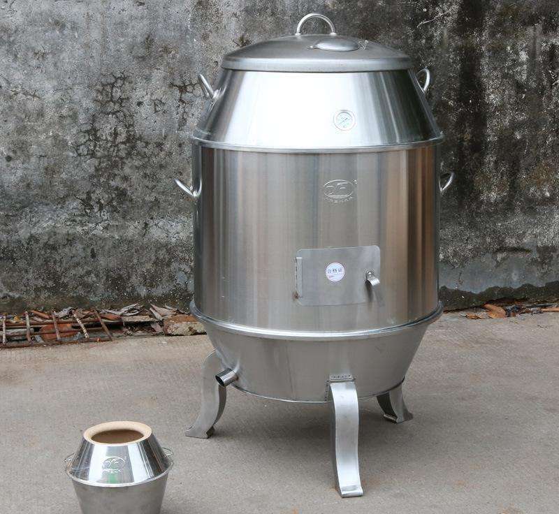 燒鴨爐制作燒烤的原理是在烤爐底層用木炭對燒烤桶進行加熱,在將要燒烤的食物放進桶內(nèi)的高溫將食物干烤成為熟食,食物在桶內(nèi)干烤完成出桶后,就像用明火燒烤爐的外觀一樣,香氣十足口感更佳,并且不易燒焦。更加健康美味且不與明火碳接觸。