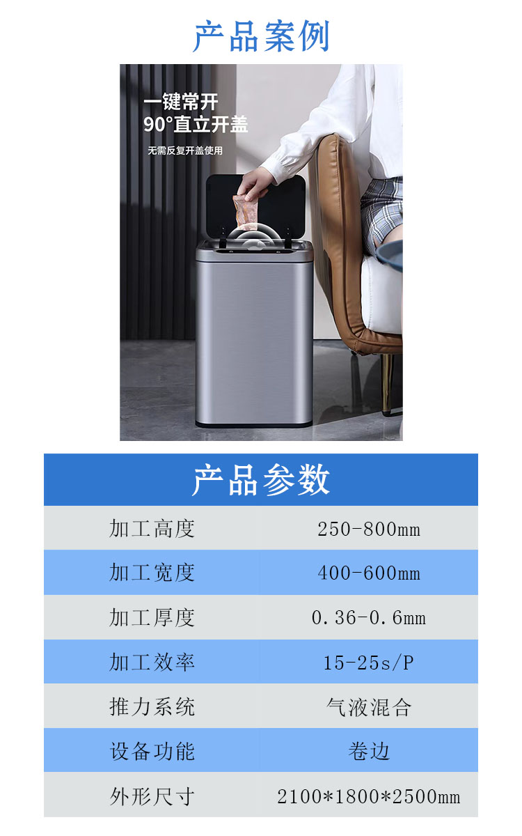 本文介紹的是一款異形雙頭卷邊機(jī),產(chǎn)品放進(jìn)模具中,按下自動(dòng)啟動(dòng)按鈕,模具推到固定位置,兩側(cè)推進(jìn)壓緊,上油缸推下碰到模具后漲緊產(chǎn)品上缸繼續(xù)往下推卷邊到設(shè)定位置,下油缸推上卷邊到設(shè)定位置,完成雙頭卷邊,全部上下油缸復(fù)位、左右氣缸復(fù)位,模具退出拿出產(chǎn)品。(公司根據(jù)客戶(hù)需求,為客戶(hù)量身定制適合的設(shè)備,歡迎新老客戶(hù)咨詢(xún)了解)
